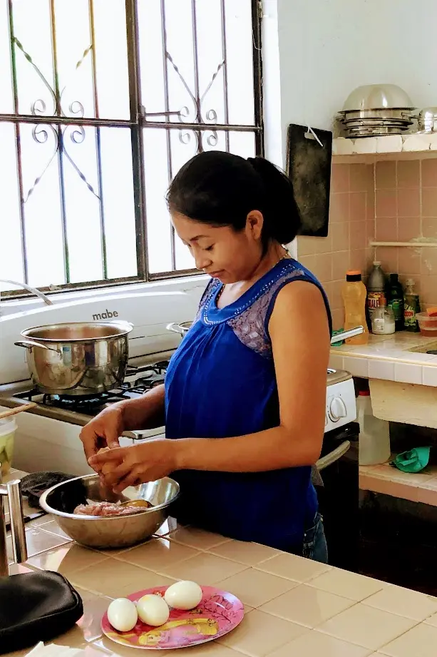 Using fresh products from the market, and with those elements, Elizabeth works her magic. Following with delicious dishes for us: Escabeche, Papadzules, Pollo Pibil, Chilmole, etc.
